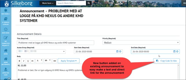 To solve this issue I have made an easy way to copy the title of the announcement and making a direct link to that announcement on a separate announcement page in the portal.