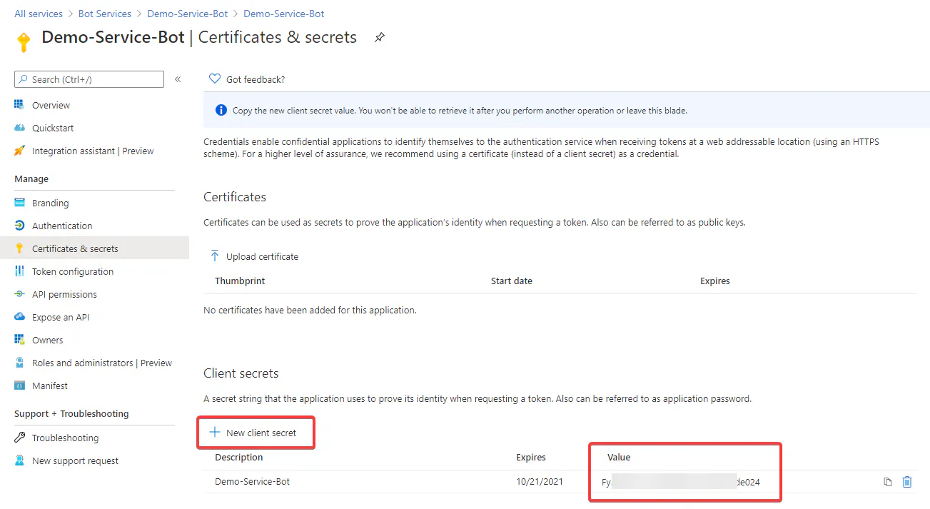 I have no problem getting thru step 3 of the Bot Profile, but I cannot figure out how to get to step 4 to set up the Secret. I do not see those options!